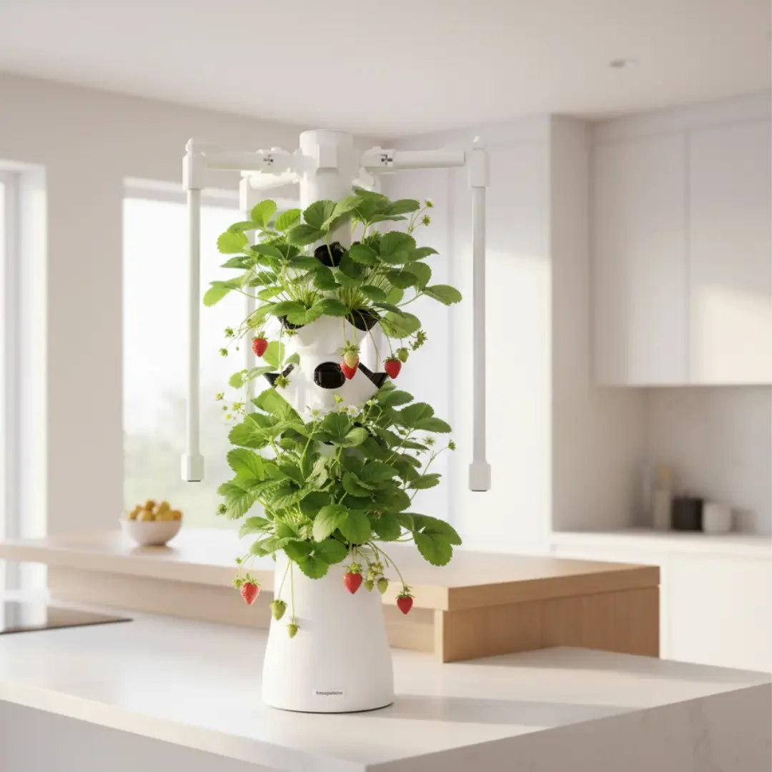 Der Table Tower Pro revolutioniert das Gärtnern auf kleinstem Raum. Mit seiner innovativen Vertikaltechnologie verwandeln Sie jeden beliebigen Standort in eine produktive Anbaufläche – indoor wie outdoor. Erleben Sie professionellen Pflanzenanbau mit automatisierter Bewässerung und Wachstums-Beleuchtung – System.